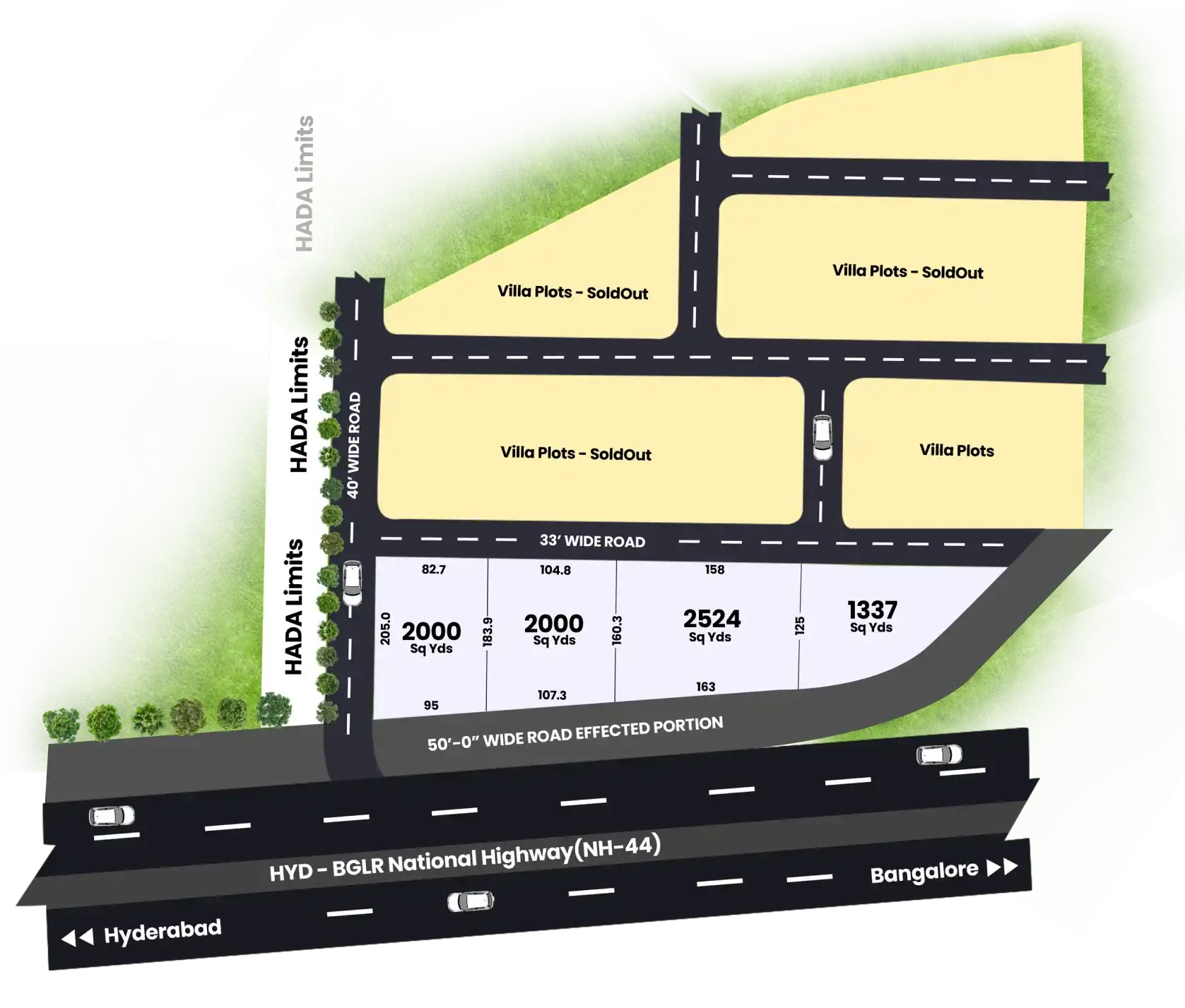 Direct highway-facing frontage on NH-44.